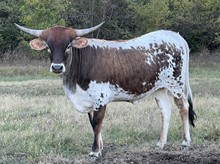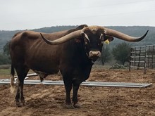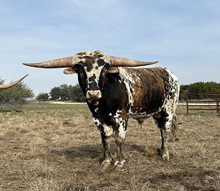 Proven production from an impeccable pedigree, 20 GAUGE continues to rock the Texas Longhorn community with complete and beautifully colored offspring that are highly desirable in every way, including early horn growth. We contribute his outstanding production to his unique and powerful maternal genetic line. In partnership and through semen sales, 20 GAUGE is being utilized in the best breeding programs in the Country with amazing results pouring in. Just look at his progeny and futurity earnings, and you will agree. Study his pedigree, and you will find multiple proven producers of horn, horn with twist, color, and conformation. In 20 GUAGE'S pedigree are some of the all-time great producing herd sires in the Industry, beginning with his sire CONCEALED WEAPON and grandsires, JP RIO GRANDE, J.R. GRAND SLAM, PEACEMAKER 44, GUNMAN, LAMBS POWER PLAY, OVERWHELMER & WATSON 83, to name a few. 20 GAUGE (2022 and 2023 BULL OF THE YEAR with $72,080.71 life-time earnings) is the highest earning bull since tracking futurity earnings began. He is undefeated in futurities and is a former Horn Showcase Champion winning in tip-to-tip, total- and composite horn. We believe the long-term legacy of HUBBELLS 20 GAUGE, with each calf that hits the ground, will prove to be among the best producing Herd Sires in Texas Longhorn History.