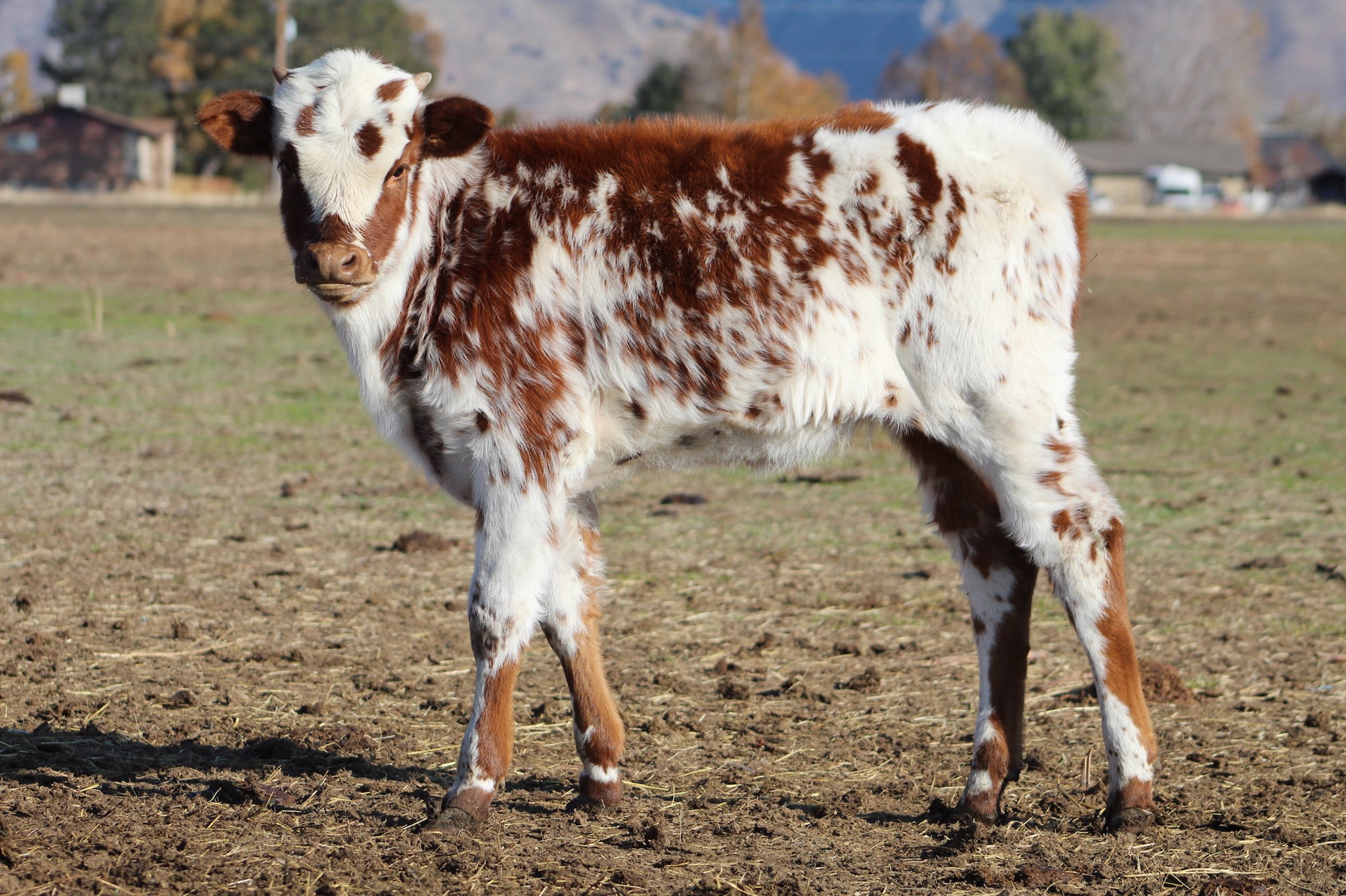 DSCC Speckled Cowgirl is one good looking heifer. She is an own daughter of the over 90" Cowboy Flair. She is also out of TCC Spotted Babe, who is over 80 inches tip-to-tip as a young 4 year old. She's got greats in her pedigree on both sides and has some serious color. We are excited to see her as a full grown female.