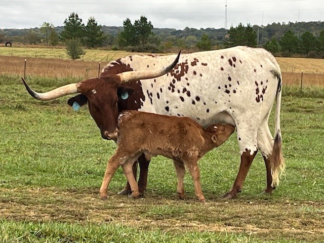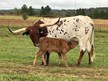 Full Sister to Multiple Futurity Class Winners and Grand Champions...MAE LU SIOUX and SIOUX ZEE SIOUX .. See Dam Progeny ...Gorgeous HUBBELL'S 20 GAUGE daughter directly from a family of Power, conformation, color, and correct maternal traits. Her older sisters are Futurity winners, excellent producers, and have Twisty Horn Measurements approaching 100 inches. DEJA, a great mama, is raising her Fall 2025 DON'T STOP BELIEVIN bull calf, her first. ..Study this family, its Production and Honors...Confirmed bred to RJF COWBOY REB for Fall '26 heifer calf.....