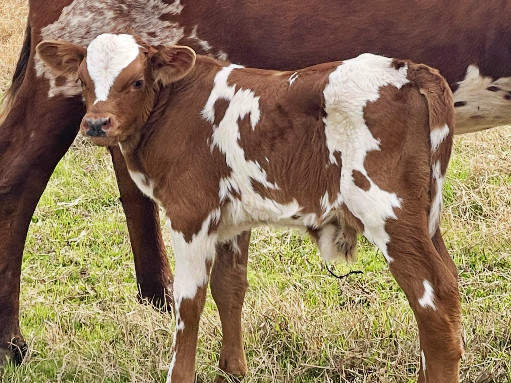 Red head with white shield, red and white paint body. Brindle nose