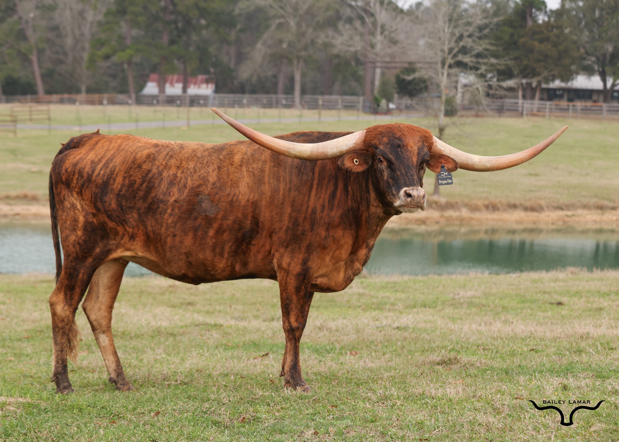 This beautiful brindle daughter of the famous Dragon Lady a 100” T2T beautiful speckled female. Her sire is the big bodied Reckon So, a Cowboy Tuff Chex son out of Dragon Pearl. She is the look alike full sister to the 97” T2T Dragoness.