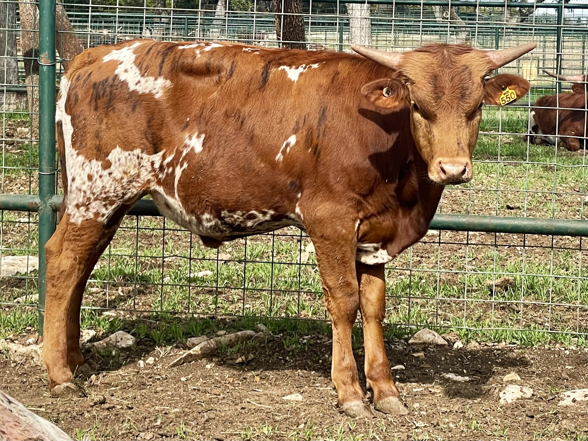 Red brindle with speckled underline and white patched rump
