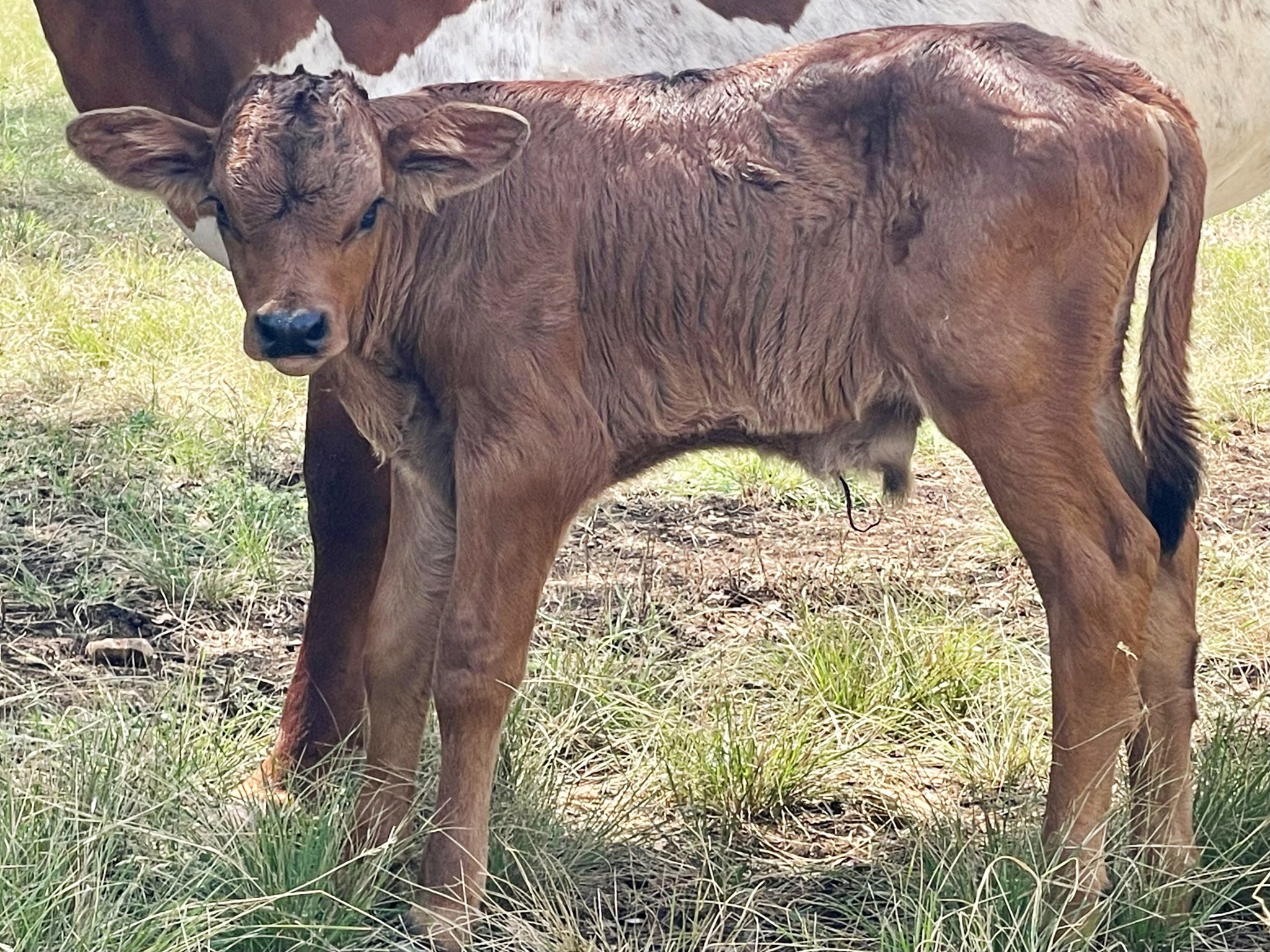 Dark red with black nose, toes, and tail switch.