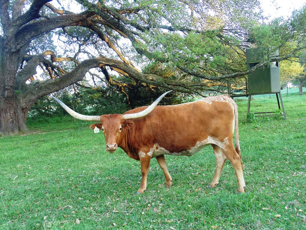 Texana is a big bodied and big horned cow. She is always high headed and her color and size makes her one of our favorite longhorns