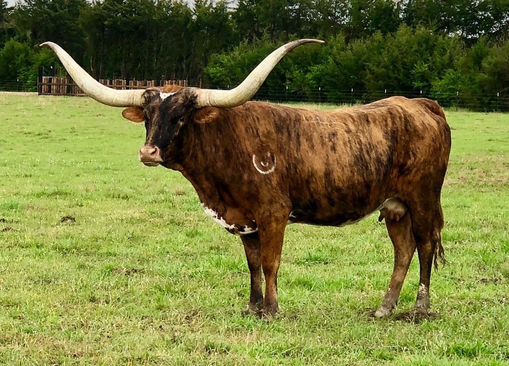 This gorgeous Cowboy Catchit Chex daughter is a delight to own and see everyday! She has over 86.25” of beautiful rolling horn and a gorgeous brindle color. We are retaining heifers as replacements.