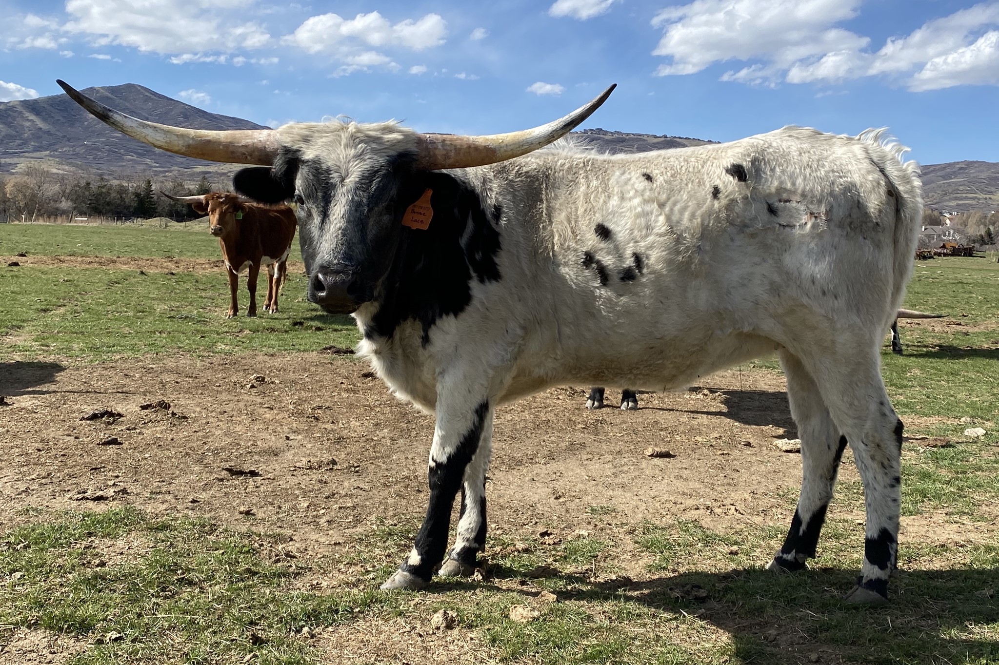 Bonnie Lace is a really nice Saddlehorn daughter with a lot of frosting on her face and neck. She has 5 animals over 80 inches in her pedigree. (Top Caliber 88.25, Saddlehorn 85.0, HR Bonnet 80.0, WF Bonnie Best 86.0, & LCR Buena Joya 80.875). She gave us a gorgeous Cowboy Flair bull calf this year with awesome color. He might be a future herd sire. She has been bred back to Cowboy Flair for a Fall 2021 calf.